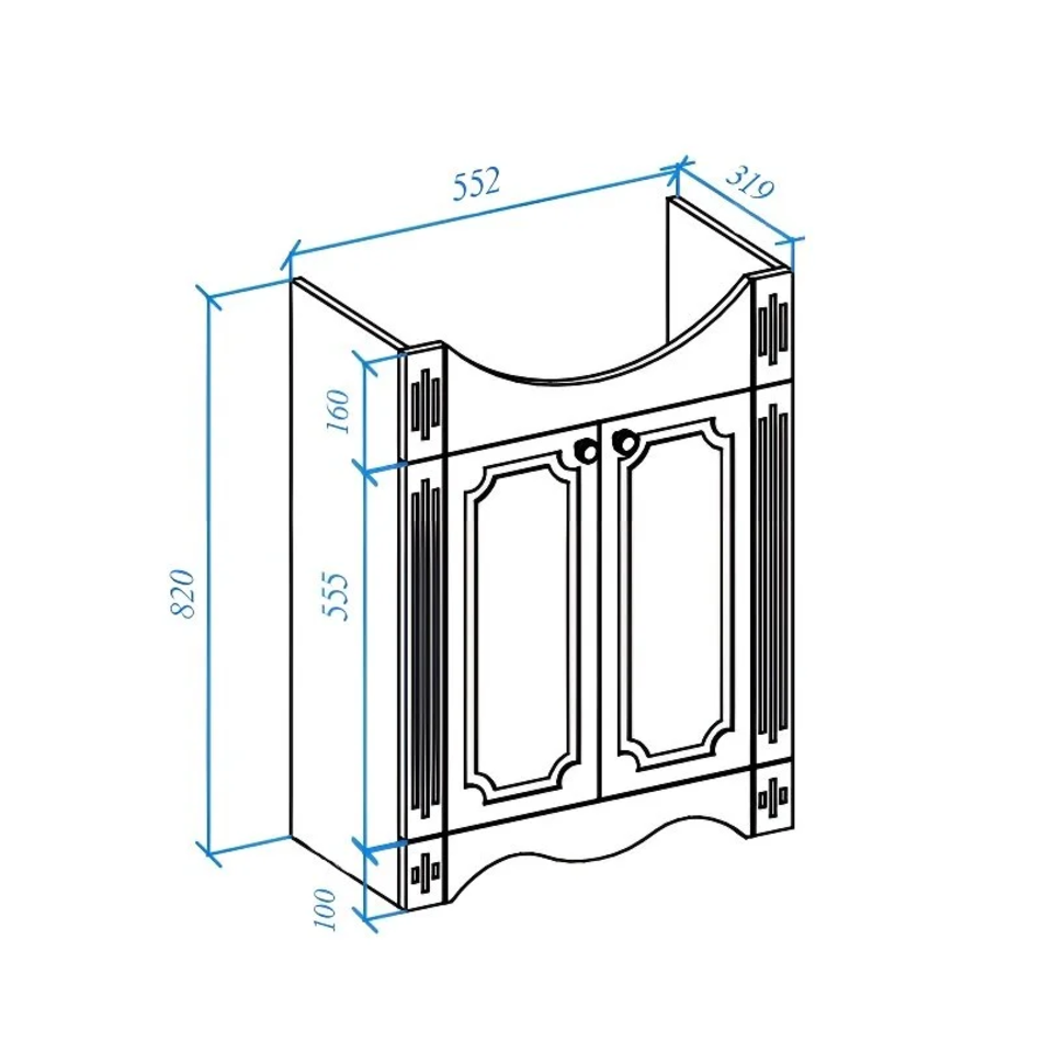 Тумба под раковину Размер: 55.2 x 31.9 x 83 см Монтаж: напольный Двери распашные: 2 Система плавного закрывания Материал ЛДСП, МДФ Форма: прямоугольная Цвет: белый
