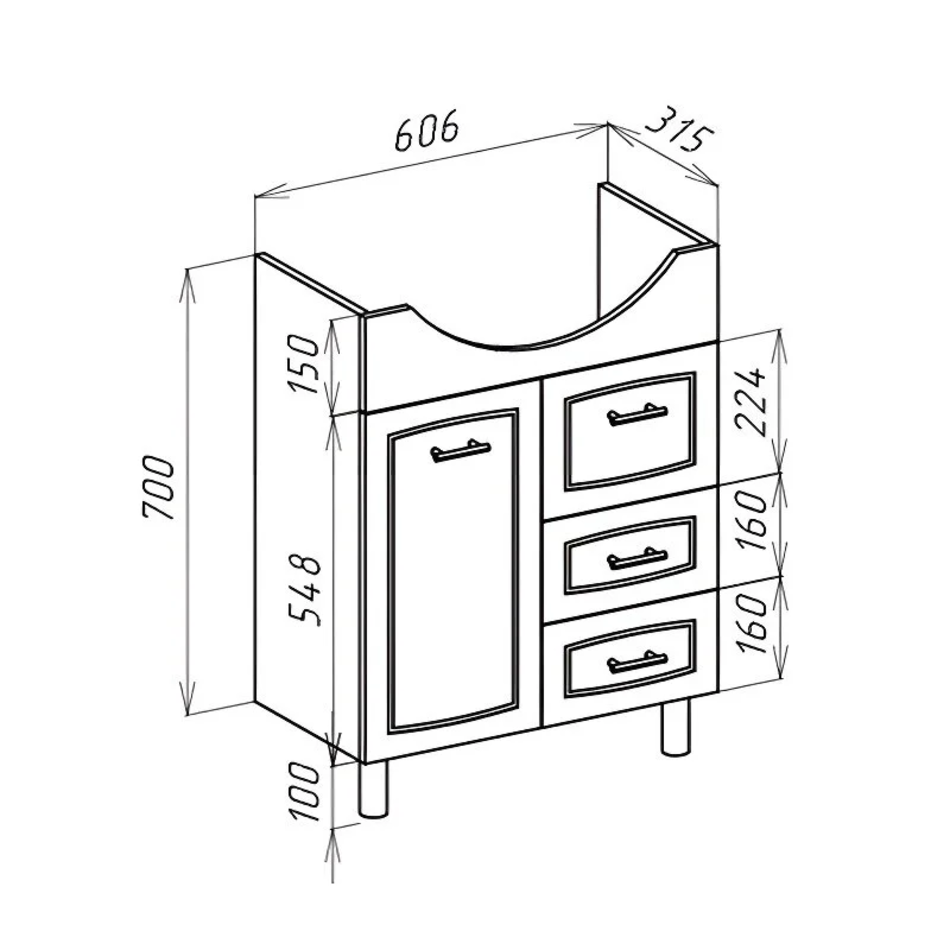 Тумба под раковину Bellezza Классик 4631909700010, 65 см, напольная, цвет белый