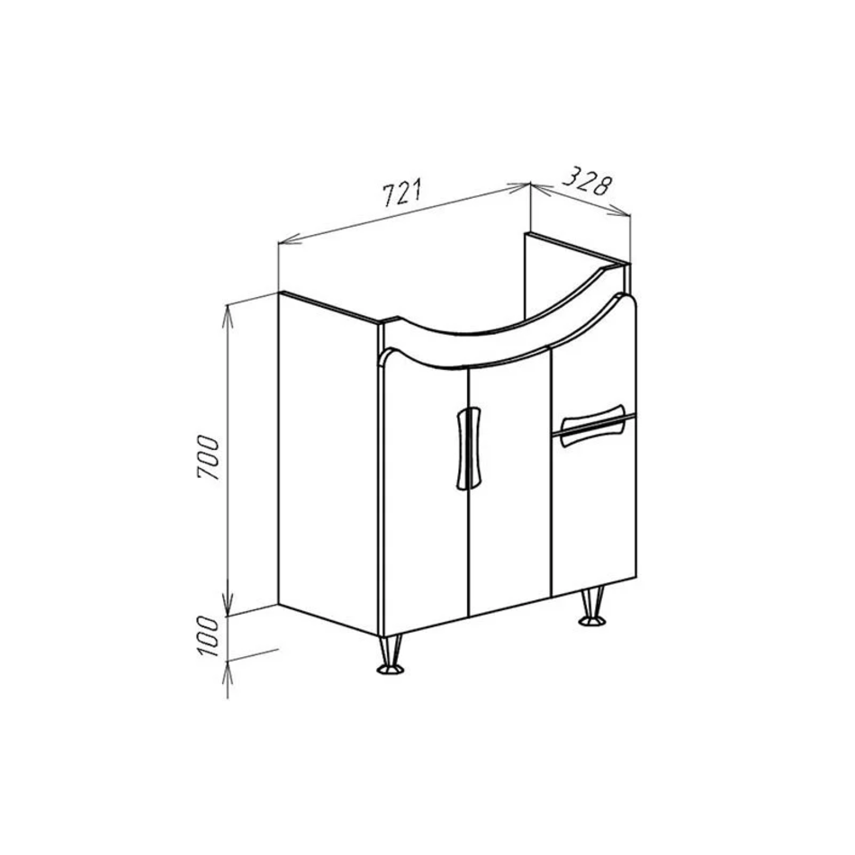 Тумба напольная ЛАГУНА 75, на ножках, с одним выдвижным ящиком и с тремя распашными фасадами, внутреннее пространство разделено полочкой