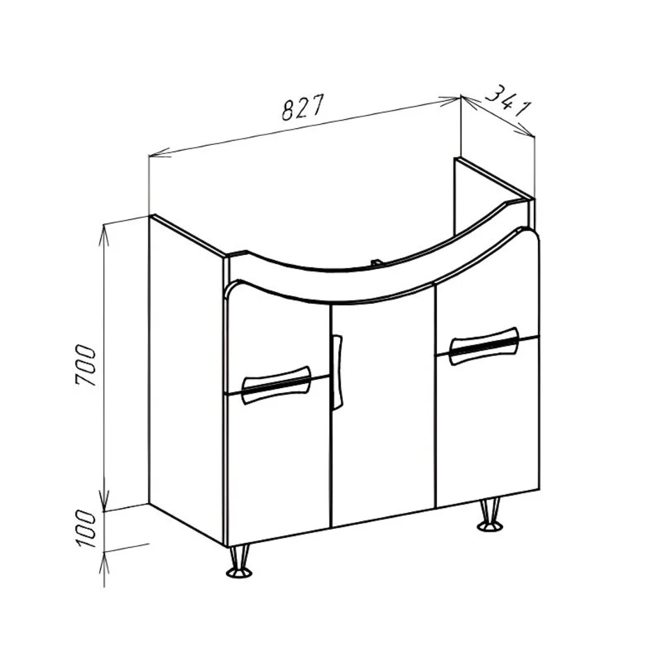 Тумба напольная ЛАГУНА 85, на ножках, с двумя выдвижными ящиками и с тремя распашными фасадами