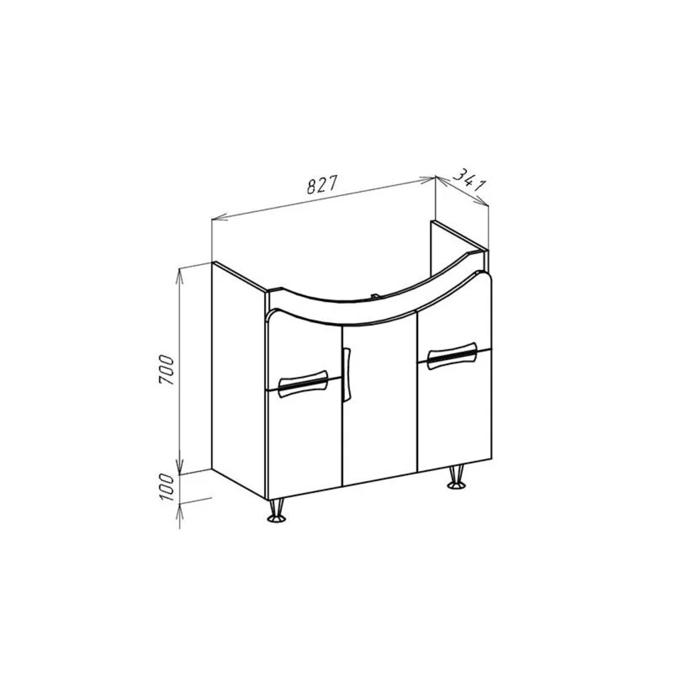Тумба напольная ЛАГУНА 85, на ножках, с двумя выдвижными ящиками и с тремя распашными фасадами