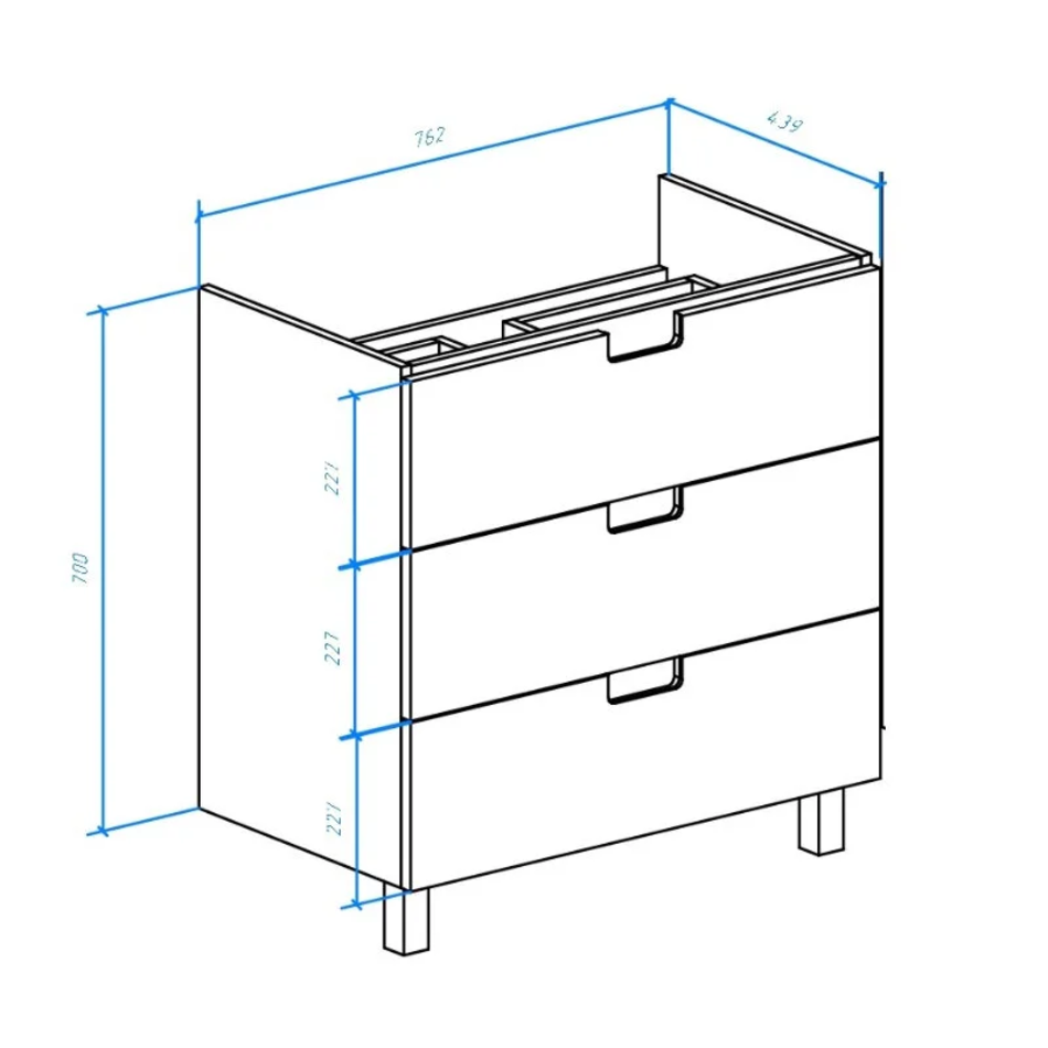 Три вместительных ящика с направляющими для плавного и бесшумного закрывания.