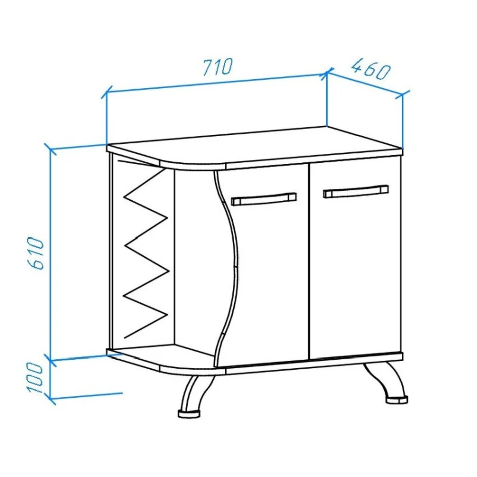 Две распашные дверцы с доводчиками для плавного и бесшумного закрывания.
