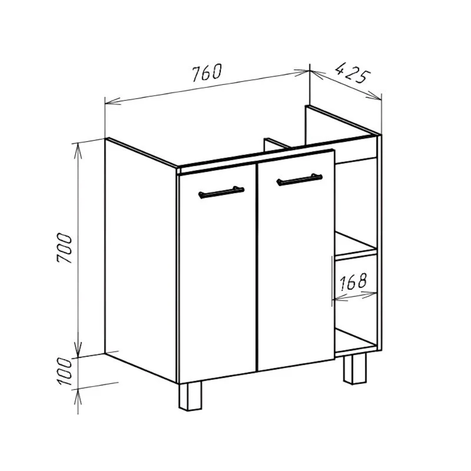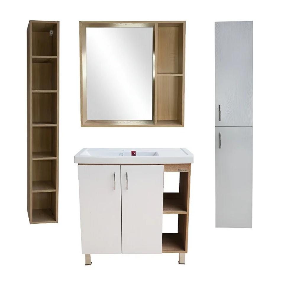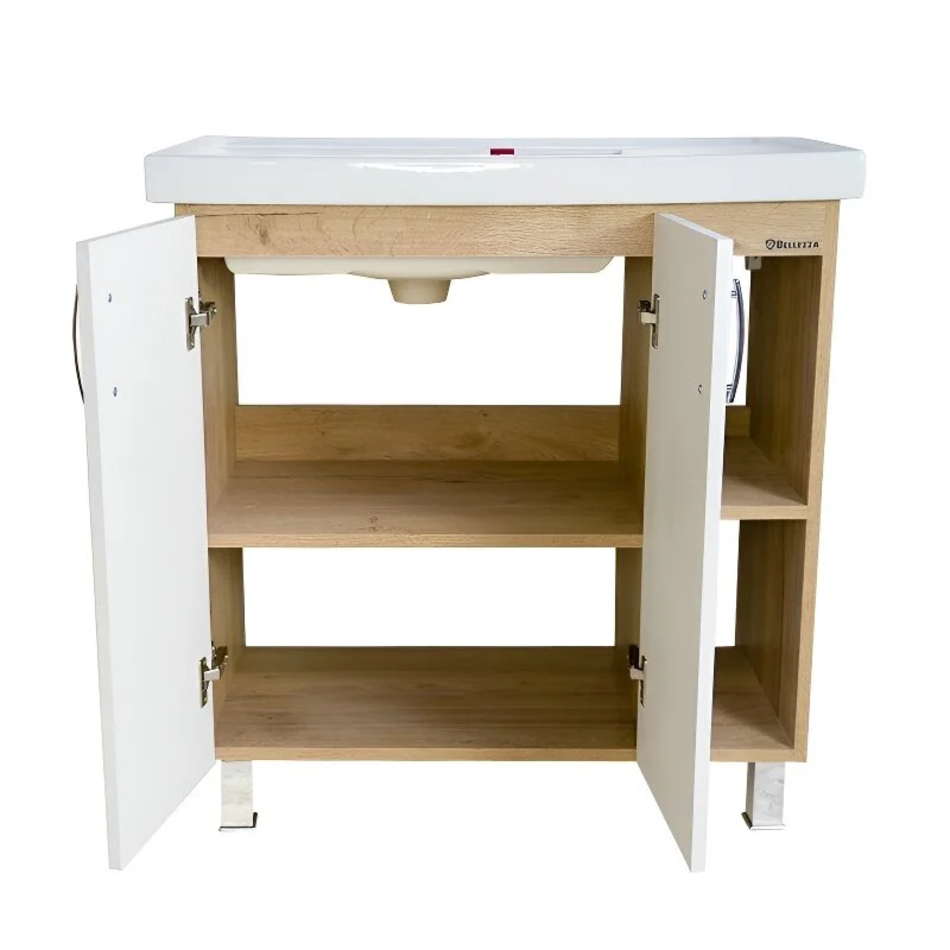 Тумба под раковину Bellezza Рона 80, напольная, натуральный дуб/белый, правая, 4634113030508