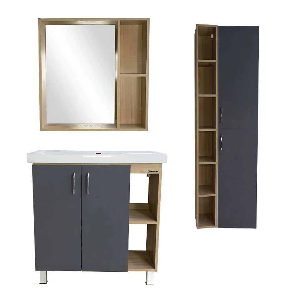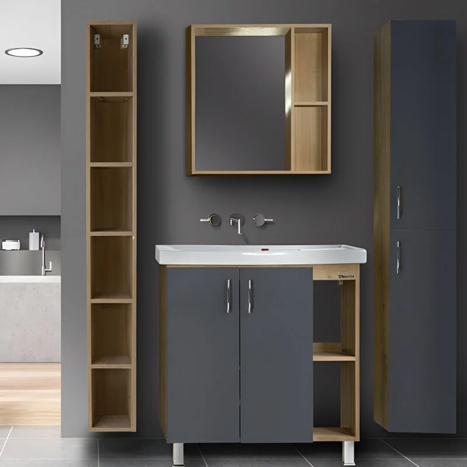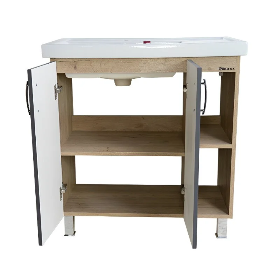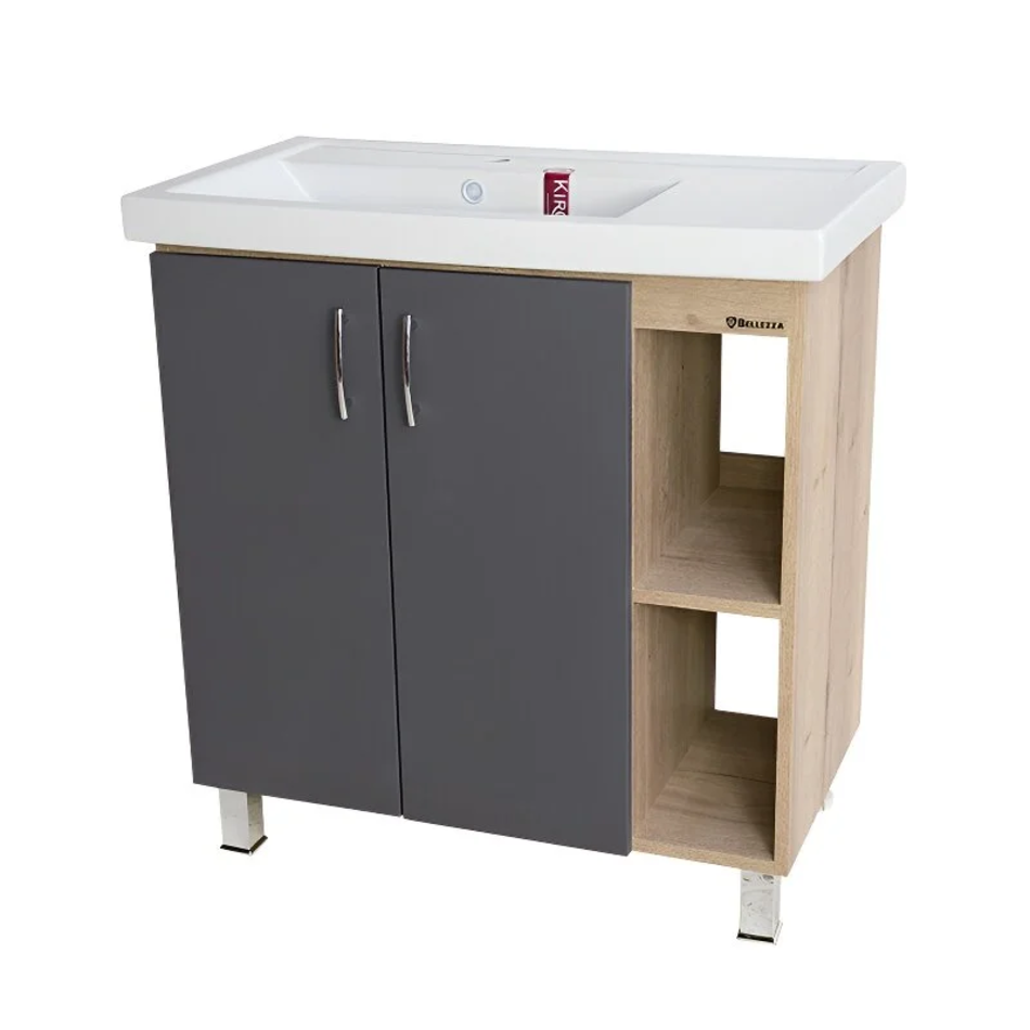 Тумба под раковину Bellezza Рона 80, напольная, натуральный дуб/серебро, правая, 4634113030515