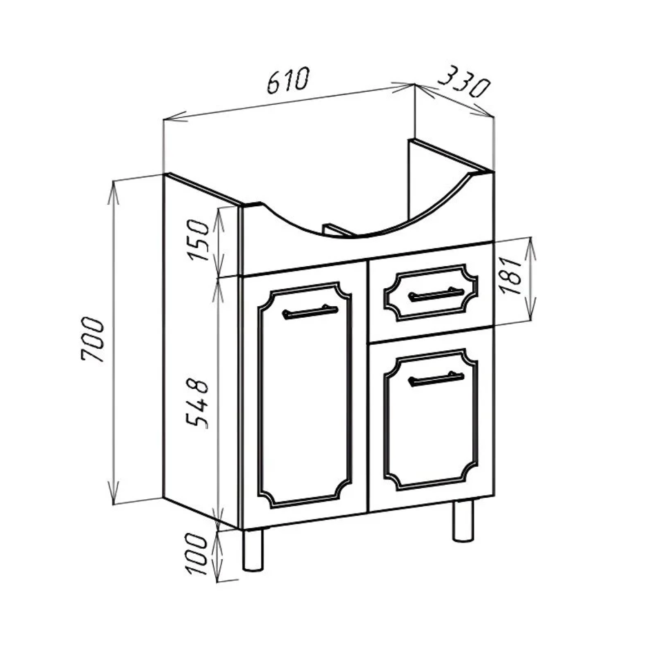 Тумба подвесная СТЕЛЛА 65, на ножках, с двумя распашными фасадами