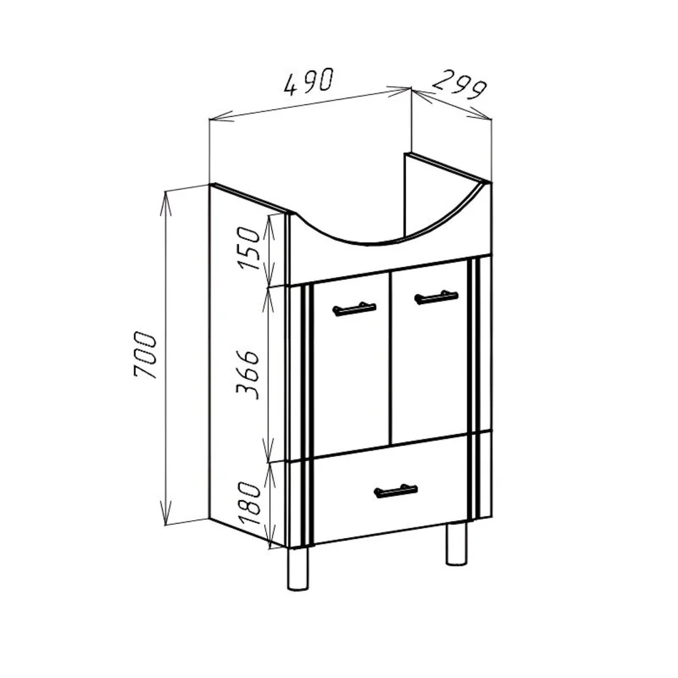 Тумба под раковину Bellezza Уют 4635006070014, 50 см, напольная, цвет белый