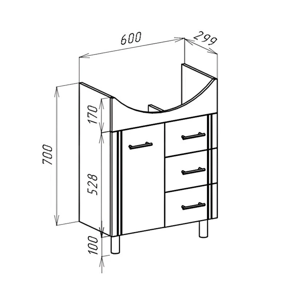 Тумба под раковину Bellezza Уют 4635009140011, 60 см, напольная, цвет белый