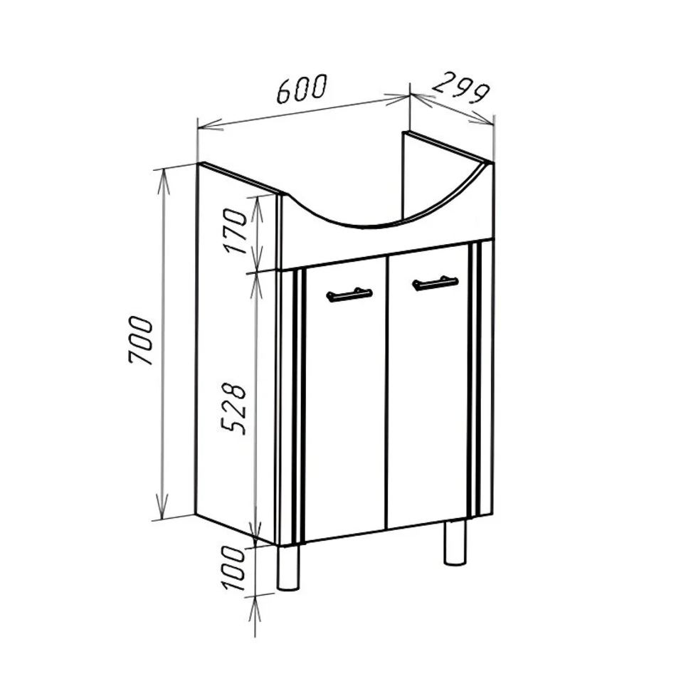 Тумба под раковину Bellezza Уют 4635009240018, 60 см, напольная, цвет белый