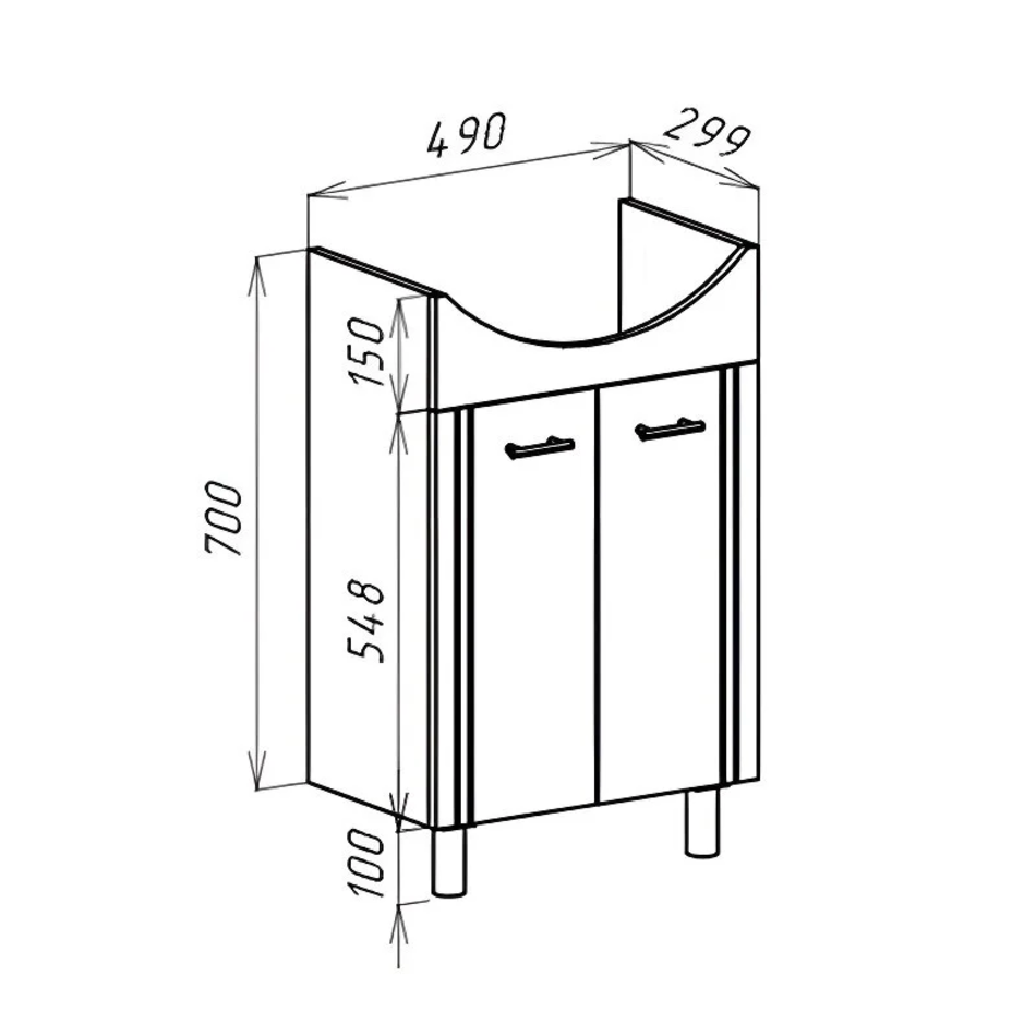 Тумба подвесная УЮТ 50, на ножках, с двумя распашными фасадами