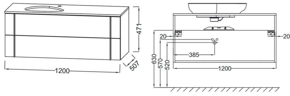 Тумба под раковину Jacob Delafon Nouvelle Vague 120 EB3041-G73, синий шторм глянцевый