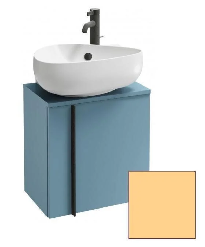 Тумба (ШxГxВ): 45х30х46.8 см Монтаж: подвесной Двери: 1 распашная Дверь с механизмом плавного закрывания Полка Материал: МДФ, ЛДСП Покрытие: лак Вариант исполнения: левый/правый Цвет: желтый (S07 – желтый сатин)