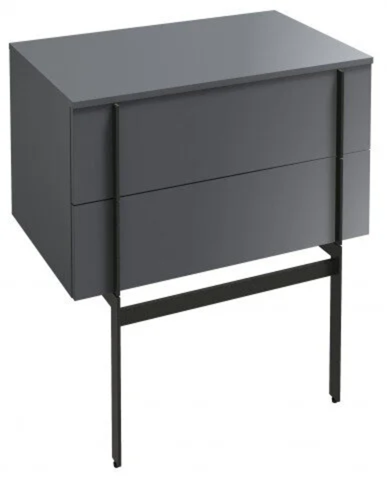 Тумба (ШxГxВ): 80х51.2х46.8 см Монтаж: подвесной Выдвижные ящики: 2 Ящики с механизмом плавного закрывания Материал: МДФ, ЛДСП Покрытие: лак Цвет: серый (M53 – серый антрацит матовый) Ножки к комоду приобретаются отдельно!