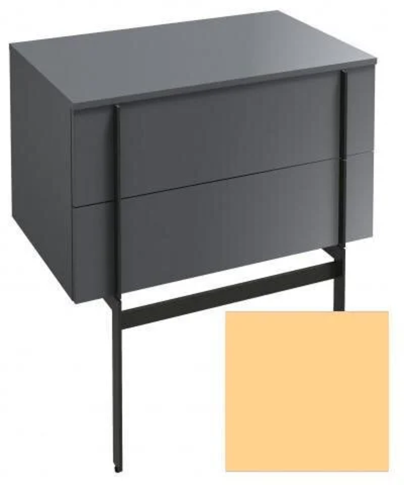 Тумба (ШxГxВ): 80х51.2х46.8 см Монтаж: подвесной Выдвижные ящики: 2 Ящики с механизмом плавного закрывания Материал: МДФ, ЛДСП Покрытие: лак Цвет: желтый (S07 – желтый сатин) Ножки к комоду приобретаются отдельно!