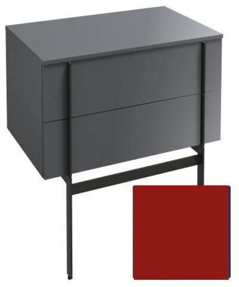 Тумба (ШxГxВ): 80х51.2х46.8 см Монтаж: подвесной Выдвижные ящики: 2 Ящики с механизмом плавного закрывания Материал: МДФ, ЛДСП Покрытие: лак Цвет: темно-красный (S08 – магма сатин) Ножки к комоду приобретаются отдельно!
