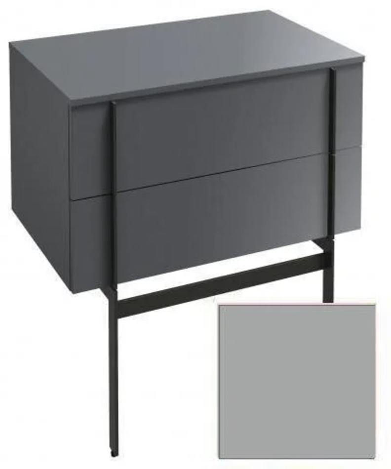 Тумба (ШxГxВ): 80х51.2х46.8 см Монтаж: подвесной Выдвижные ящики: 2 Ящики с механизмом плавного закрывания Материал: МДФ, ЛДСП Покрытие: лак Цвет: серый (S46 – пепельный сатин) Ножки к комоду приобретаются отдельно!