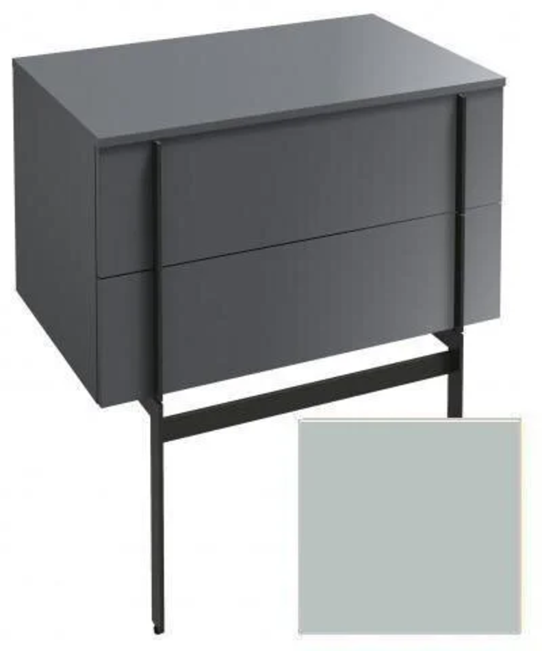 Тумба (ШxГxВ): 80х51.2х46.8 см Монтаж: подвесной Выдвижные ящики: 2 Ящики с механизмом плавного закрывания Материал: МДФ, ЛДСП Покрытие: лак Цвет: серый (S51 – миндальный сатин)