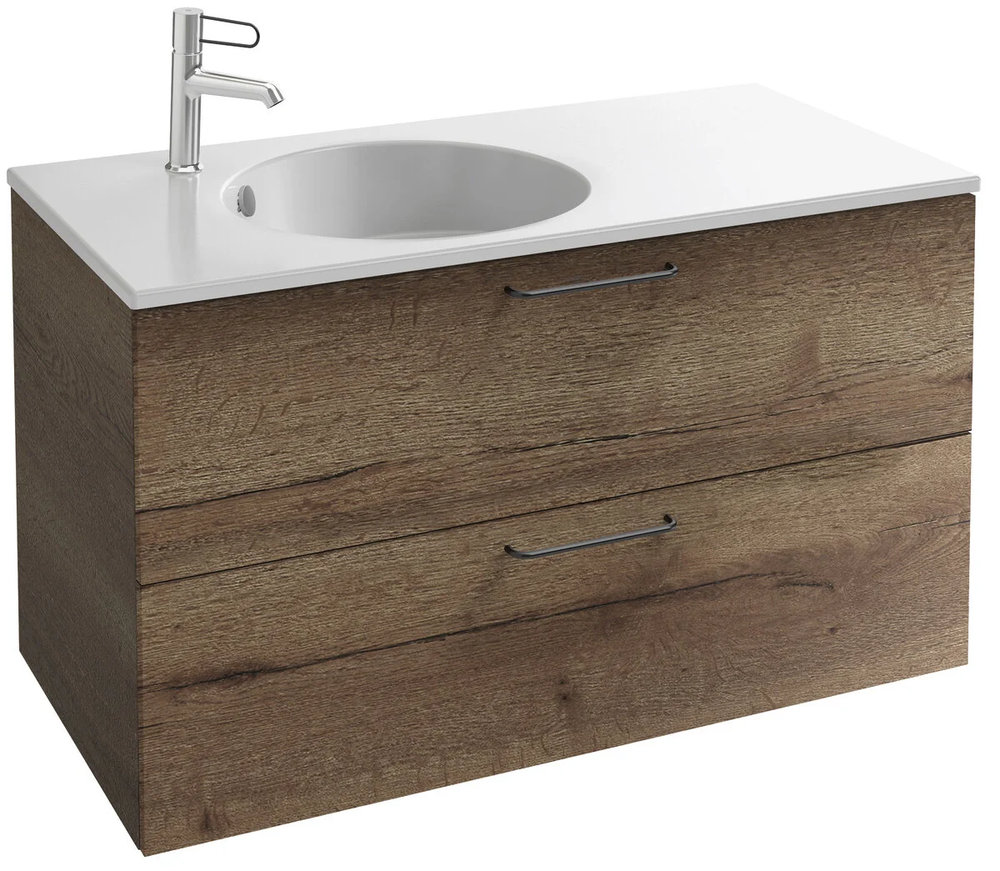 Тумба под раковину Jacob Delafon Odeon Rive Gauche 100 см, EB2524-R9-E52, цвет дуб табак, ручки черные