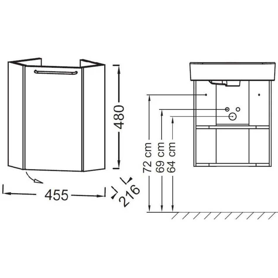 Тумба под раковину Jacob Delafon Odeon Rive Gauche 45 см, цвет серый антрацит глянцевый, ручки на выбор, EB2584D-RX-442/EB2584G-RX-442