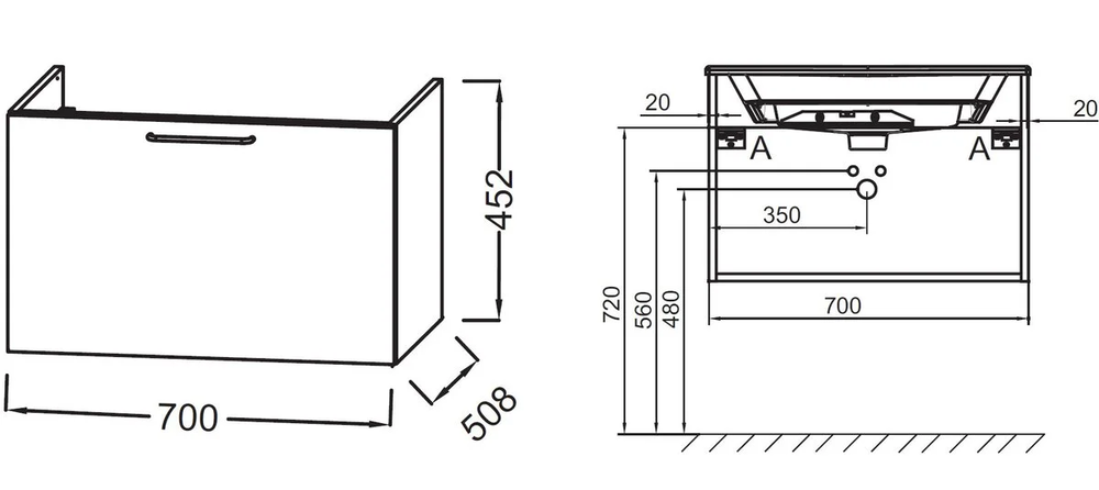Тумба под раковину Jacob Delafon Odeon Rive Gauche 70 см, EB2511-RX-M59, цвет ледяной коричневый матовый, ручки на выбор
