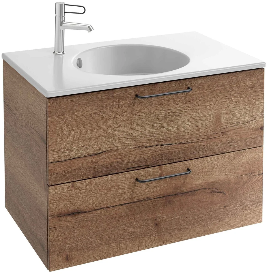 Тумба под раковину Jacob Delafon Odeon Rive Gauche 80 см, EB2522-R9-E52, цвет дуб табак, ручки черные