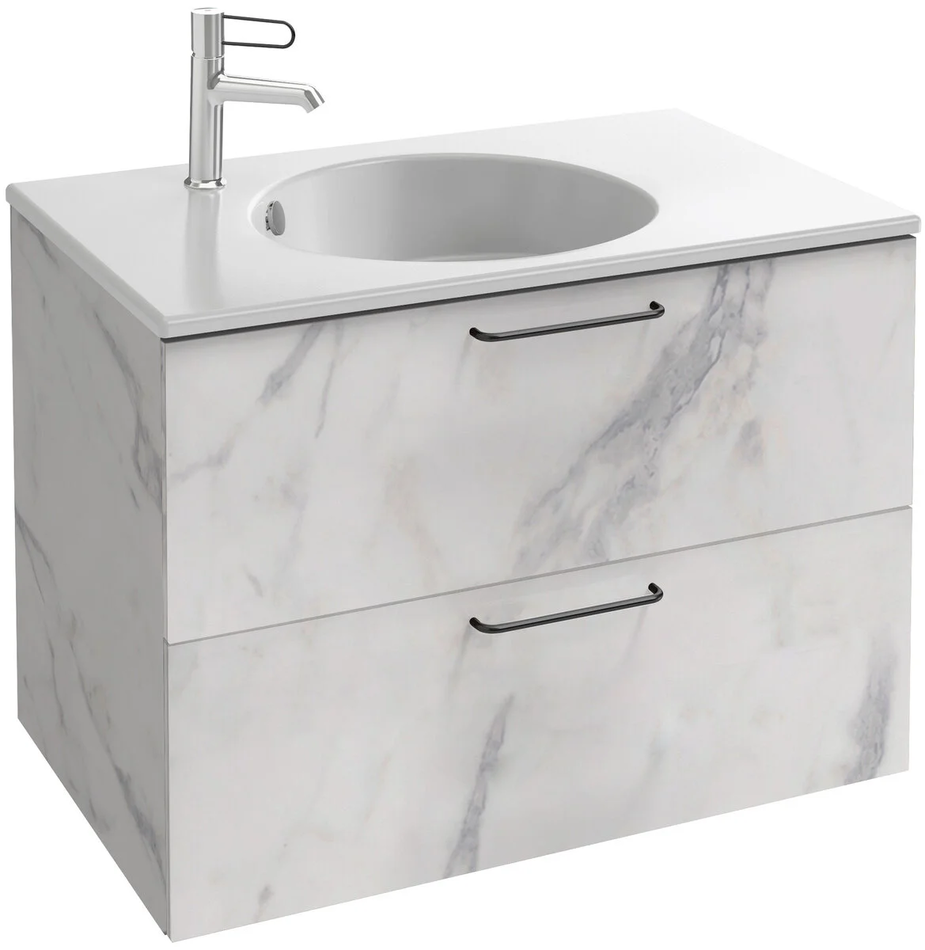 Тумба под раковину Jacob Delafon Odeon Rive Gauche 80 см, EB2522-R9-NR4, цвет белый мрамор, ручки черные