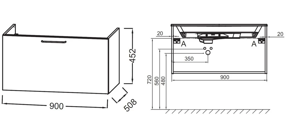 Тумба под раковину Jacob Delafon Odeon Rive Gauche 90 см, EB2513-RX-G91, цвет аквамарин глянцевый, ручки на выбор