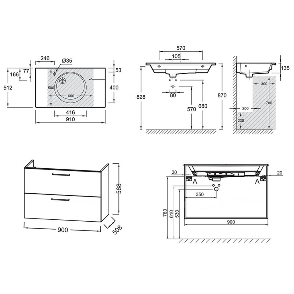 Тумба под раковину Jacob Delafon Odeon Rive Gauche 90 см, EB2523-R9-E52, цвет дуб табак меламин, ручки черные