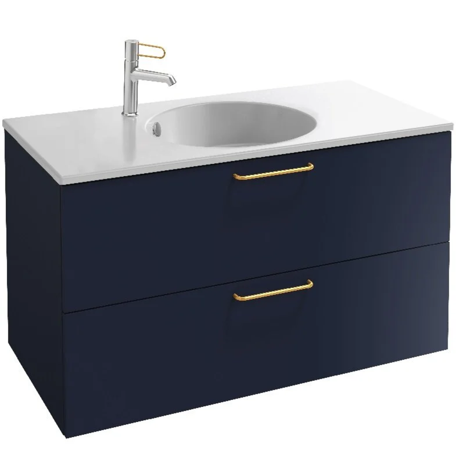 Тумба под раковину Jacob Delafon Odeon Rive Gauche 90 см, EB2523-RX-S06, цвет тёмно-синий сатин, ручки на выбор