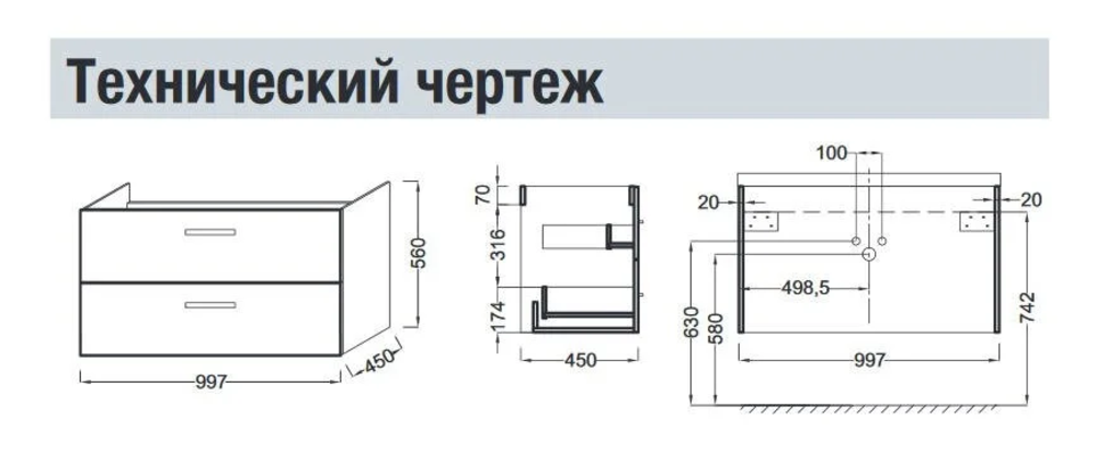 2 выдвижных ящика с механизмом "плавное закрывание"