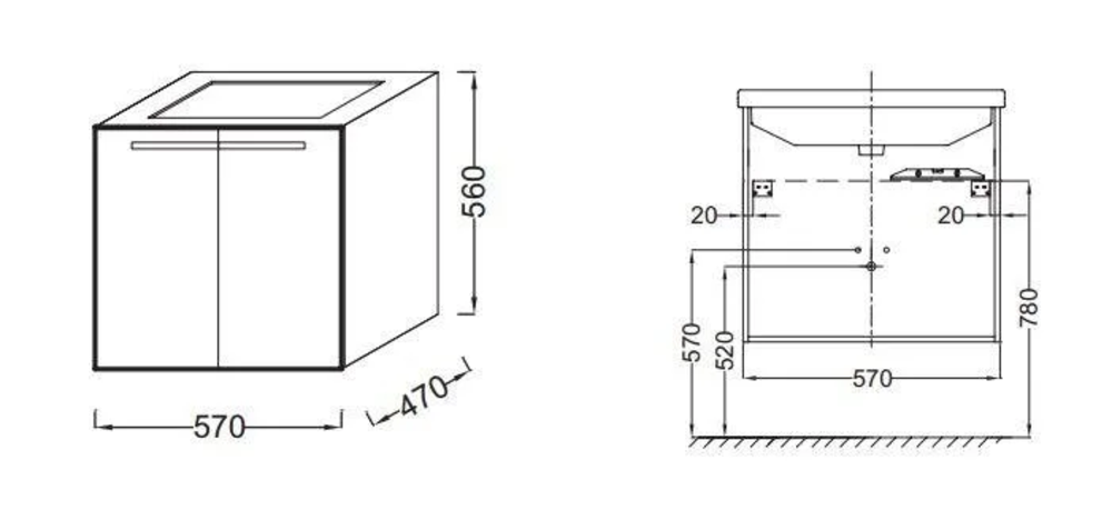 Тумба под раковину Jacob Delafon Struktura 60 EB1280, 2 двери, 57*47*56 см