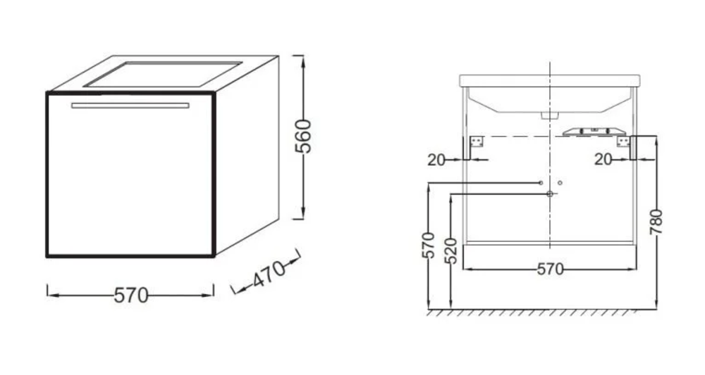 Тумба под раковину Jacob Delafon Struktura 60 EB1284, 1 ящик, 57x47x56 см