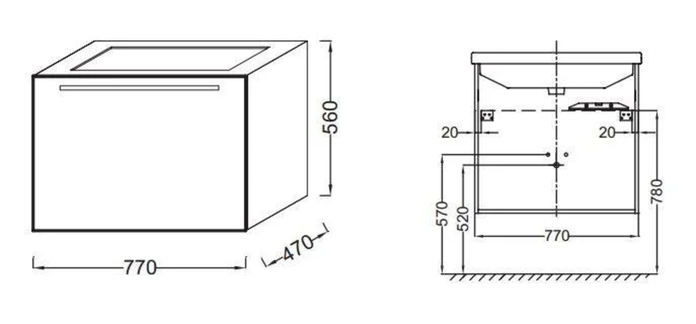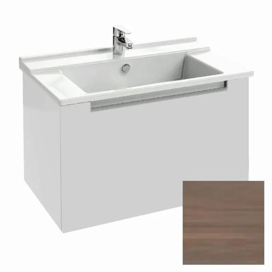 Тумба под раковину Размер (ШxГxВ): 77х47х56 см Монтаж: подвесной Ящики выдвижные: 1 С механизмом плавного закрывания Форма: прямоугольная Материал: МДФ, ЛДСП Покрытие: меламин Цвет: ореховое дерево (E16)