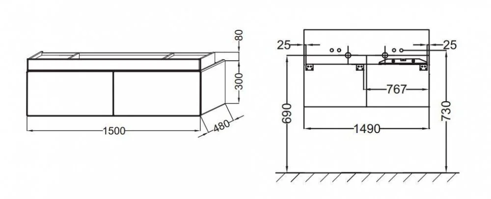 Тумба под раковину Jacob Delafon Terrace 150 см, EB1189-274, подвесная, черный лак