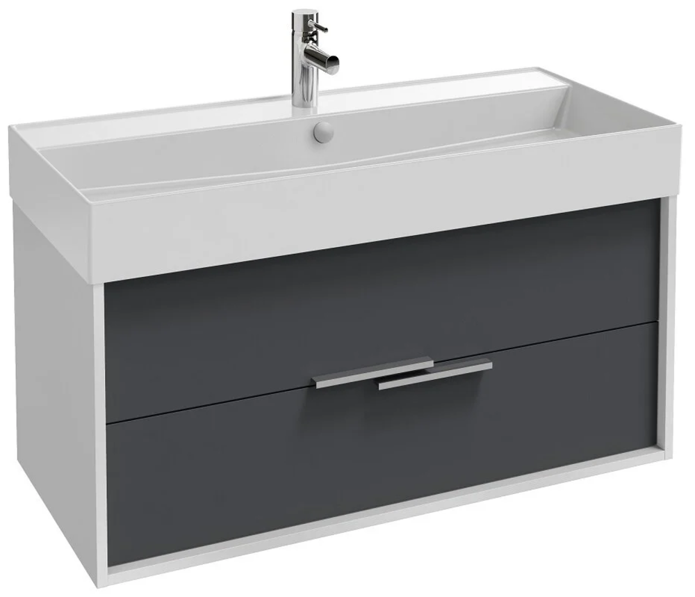 Тумба под раковину Jacob Delafon Vivienne 100 см, корпус белый глянцевый, фасад черный глянцевый, ручки хром, EB1508-N18-G1F