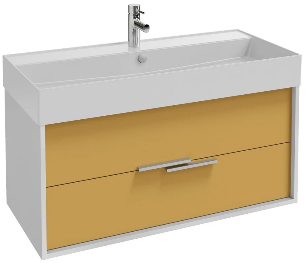 Тумба под раковину Jacob Delafon Vivienne 100 см, корпус белый глянцевый, фасад императорский жёлтый матовый, ручки хром, EB1508-N18-M86