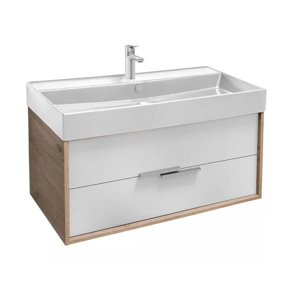 Тумба под раковину Jacob Delafon Vivienne 100 см, корпус дуб давос натуральный, фасад белый блестящий, ручки хром, EB1668-E75-J5