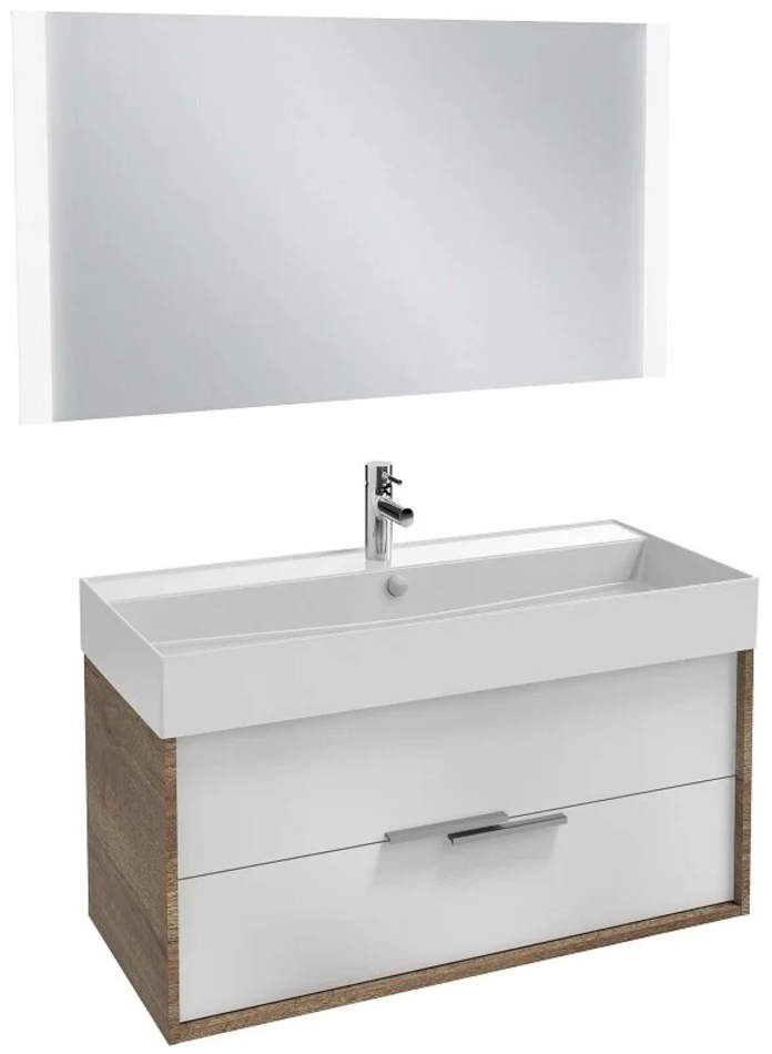 Тумба под раковину Jacob Delafon Vivienne 100 см, корпус дуб табак, фасад белый глянцевый, ручки хром, EB1508-E52-G1C