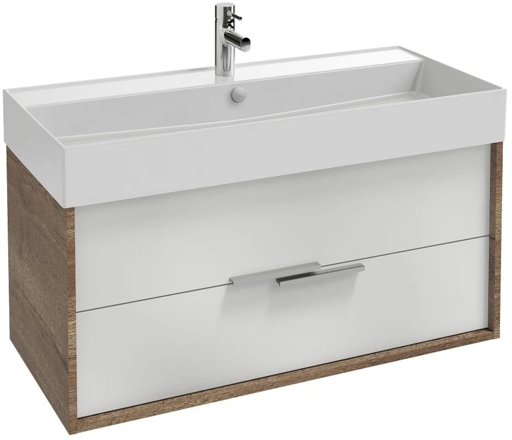Тумба под раковину Jacob Delafon Vivienne 100 см, корпус дуб табак, фасад белый глянцевый, ручки хром, EB1508-E52-N18