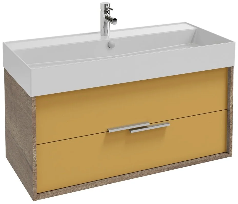 Тумба под раковину Jacob Delafon Vivienne 100 см, корпус дуб табак, фасад императорский жёлтый матовый, ручки хром, EB1508-E52-M86
