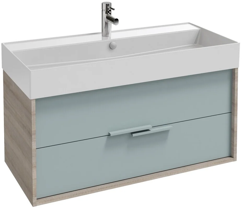 Тумба под раковину Jacob Delafon Vivienne 100 см, корпус серый дуб, фасад голубой шторм глянцевый, без ручек, EB1585-E71-G73