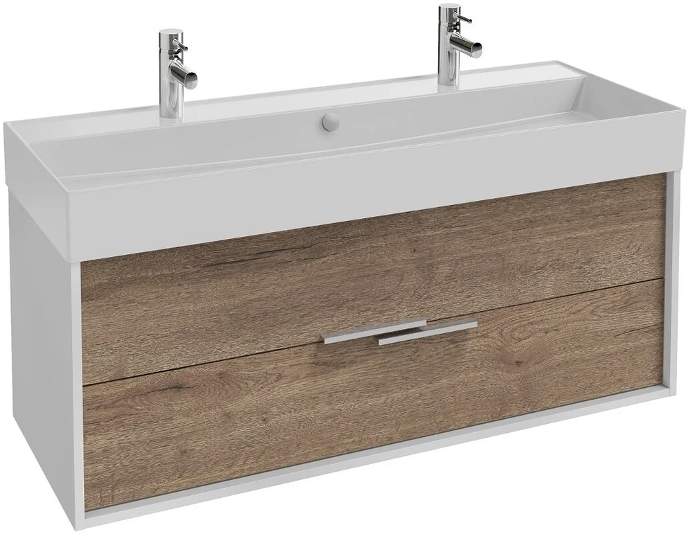 Тумба под раковину Jacob Delafon Vivienne 120 см, корпус белый глянцевый, фасад дуб табак, без ручек, EB1586-N18-E52