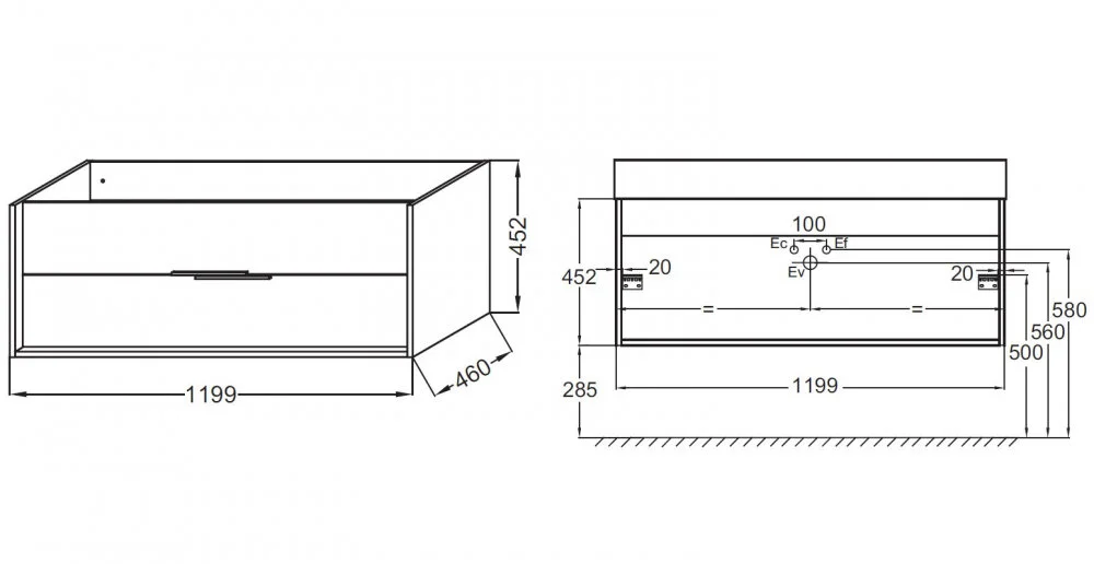 Подвесная тумба под двойную раковину