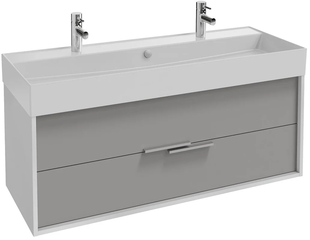 Тумба под раковину Jacob Delafon Vivienne 120 см, корпус белый глянцевый, фасад серый титан матовый, без ручек, EB1586-N18-M54
