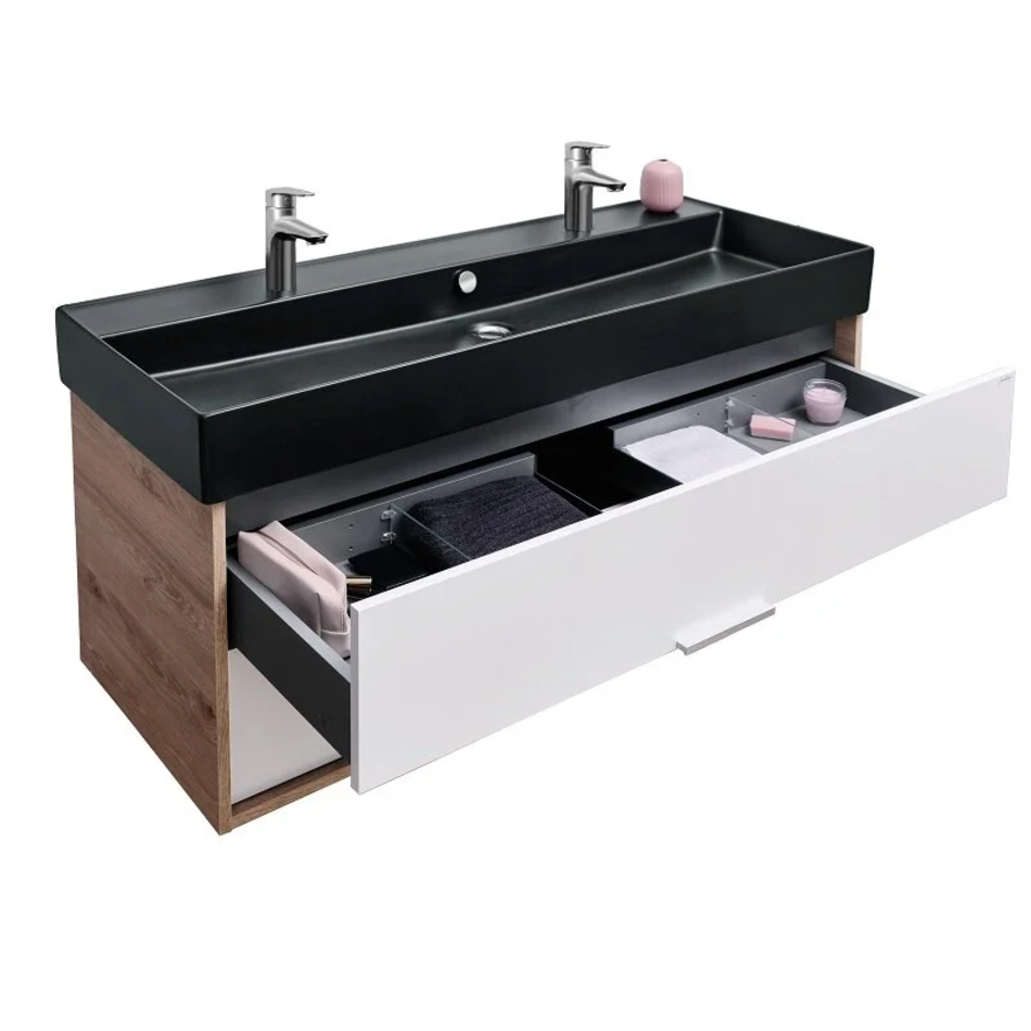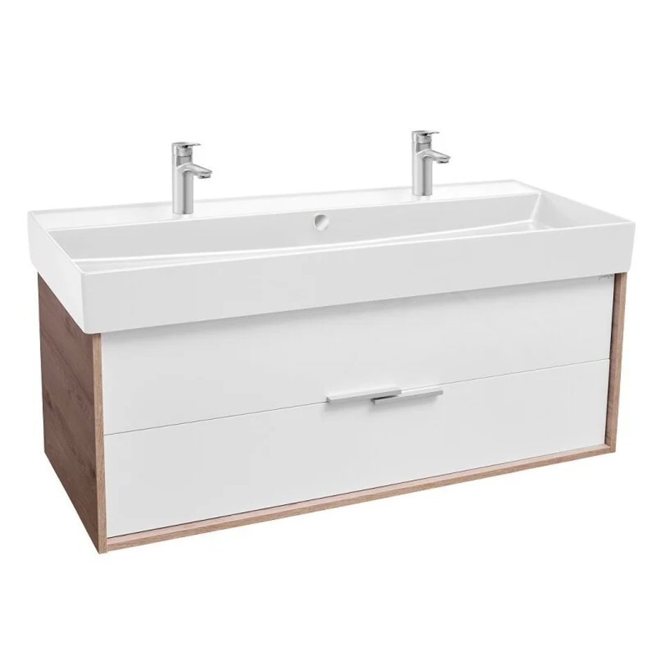 Тумба под раковину Jacob Delafon Vivienne 120 см, корпус дуб давос натуральный, фасад белый блестящий, ручки хром, EB1669-E75-J5