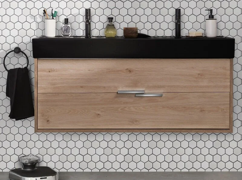Тумба под раковину Jacob Delafon Vivienne 120 см, корпус дуб давос натуральный, фасад дуб давос натуральный, ручки хром, EB1669-E75-E75