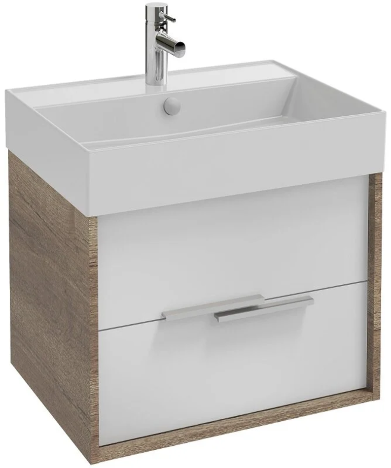 Тумба под раковину Jacob Delafon Vivienne 60 см, корпус арлингтонский дуб, фасад белый матовый, без ручек, EB1583-E70-M49
