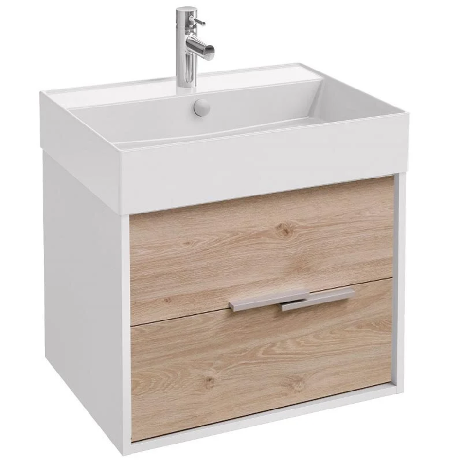 Тумба под раковину Jacob Delafon Vivienne 60 см, корпус белый блестящий, фасад дуб давос натуральный, ручки хром, EB1666-J5-E75