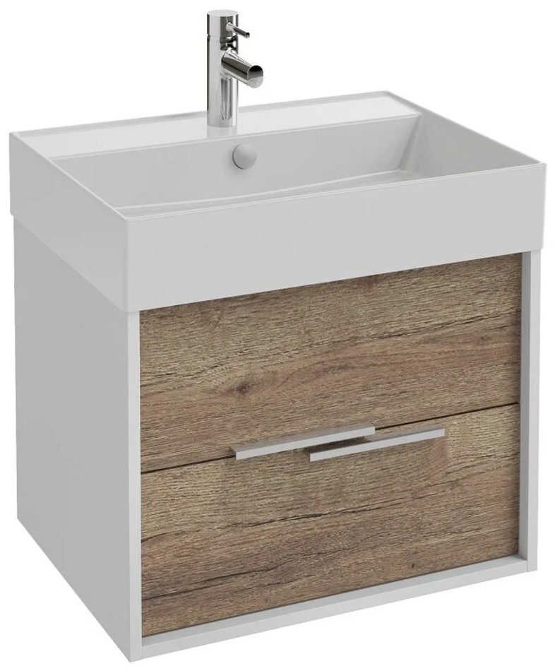 Тумба под раковину Jacob Delafon Vivienne 60 см, корпус белый глянцевый, фасад дуб табак, без ручек, EB1583-N18-E52