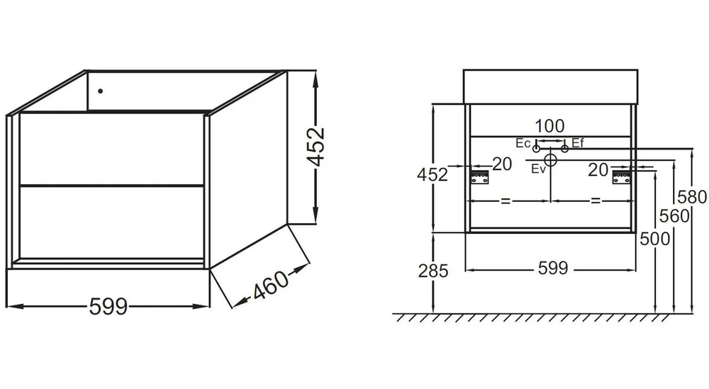 Тумба под раковину Jacob Delafon Vivienne 60 см, корпус белый глянцевый, фасад серый титан глянцевый, без ручек, EB1583-N18-N21